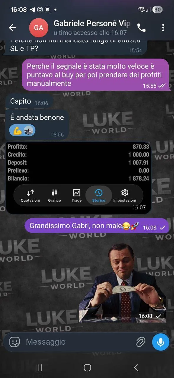 Teo da 800€ a 1400€ in una settimana, prelevando i guadagni
